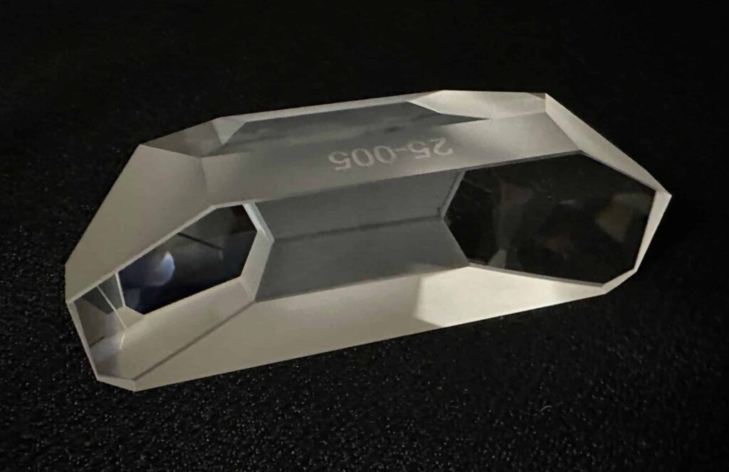 In the Optics & Photonics industry we are known as the “Prism Specialists” and in 2025, we produced more custom designed lateral transfer prisms than ever before! A lateral transfer prism behaves functionally like a corner cube retroreflector, however it offers customizable beam displacement over customizable (and often smaller) clear apertures. This prism configuration in particular, brings forth multiple strengths within our core competencies: design support, custom prism configuration, ultra high accuracy, & custom thin film coatings. Please contact us at sales@precisionoptical.com if you have a need for a custom lateral transfer prism, or any custom prism configuration.